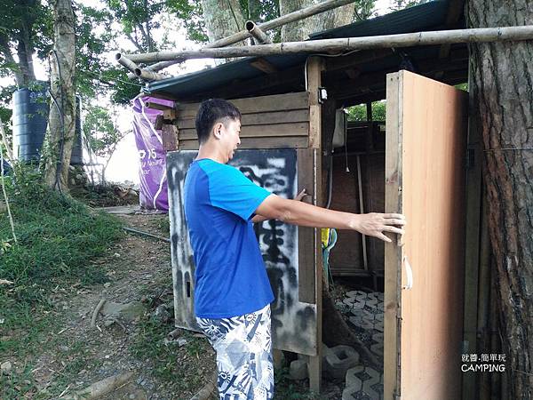 沒錯,廁所的規劃也超級天然+原始,由營主自己動手建蓋,除了廁所裡有棵大樹,前面更是給你超級天然的畫作。