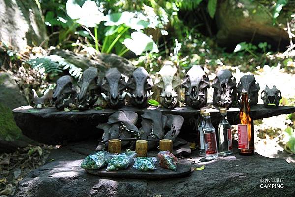 墊墊肚子,補充體力,準備入山。入山儀式,皆由男丁代表,拿出一早買的雙寶:檳榔+米酒。