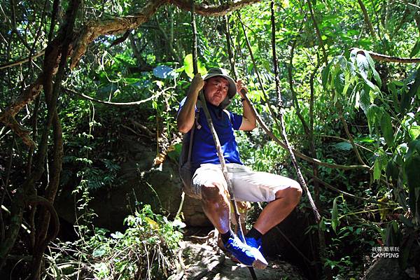 進到山裡頭,每顆樹的藤蔓都是又粗又壯,渾然天成的盪鞦韆器材。