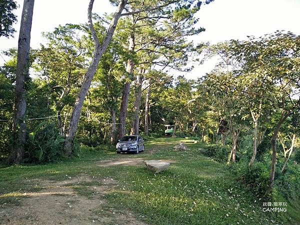 終於來到營地前,只見一片樹林。整個心花怒放。