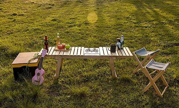 享受露營的同時,帶上木桌彷彿也把家的質感與溫度一塊帶出門 。