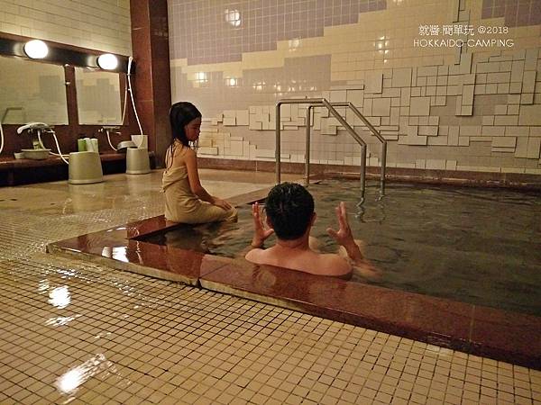 還好,扶著牆壁休息,一旁還有椅子,才不至於摔的嚴重,還可以幫他們拍張泡湯後的開心照。也還好今天是家庭池,否則實在太丟臉了。