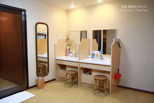 更衣間內還有化妝檯,基本的保養品都準備得很齊全,真的很不賴。