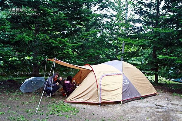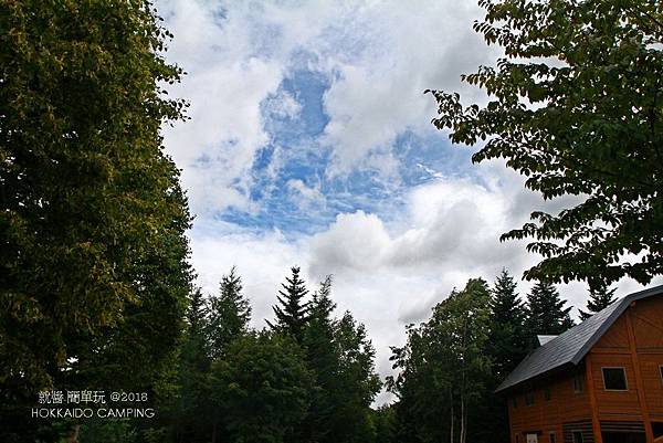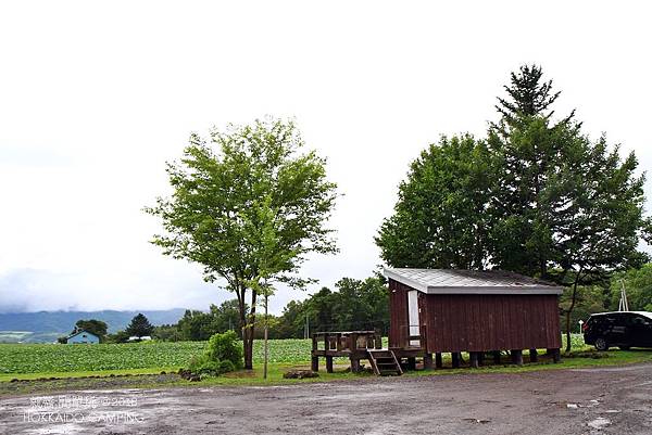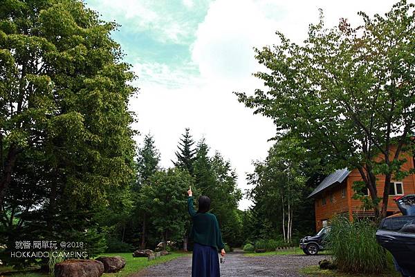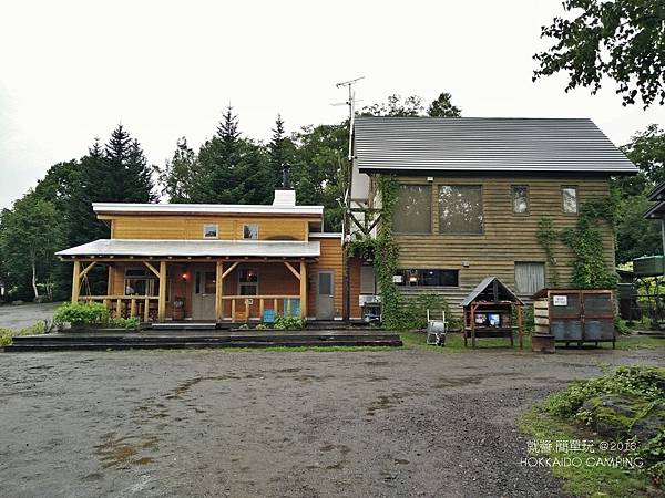 開著車,莫名的跑到二世谷ニセコサヒナ露營場,原本沒有預計停留的點。下車問了營地小木屋是否還有位置,結果答案和心中預知的相同,下雨天怎可能還有小木屋的位置啊!
