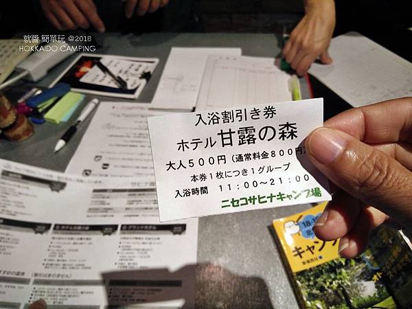 在這裡露營,管理員同時提供附近泡湯的優惠卷,露友可以自行選擇想去的湯池。這讓我想起台中谷關附近的露營區,露營還可領取泡湯折價卷。