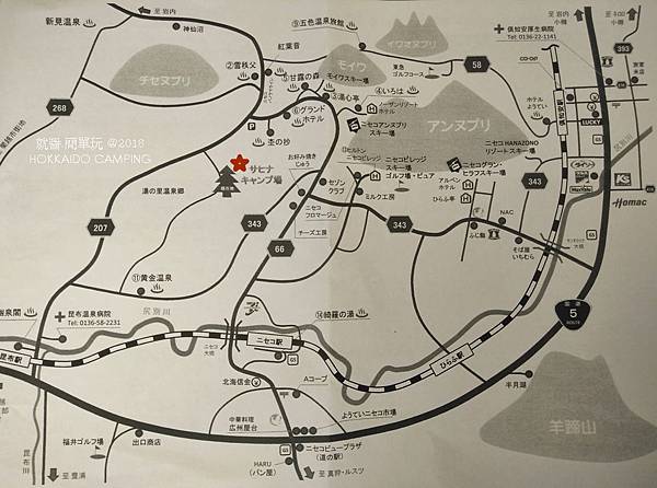 經過和服務人員進行一場英文夾雜日文再穿插手語後,才知道這裡是位在二世谷滑雪勝地新雪谷町區內,且四周都是泡湯的點。露營地還能直接觀賞羊蹄山美景。