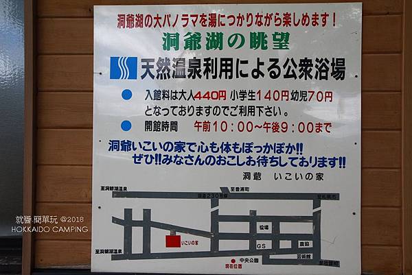 如果要泡湯,可以營地上方 "洞爺いこいの家 " 利用公眾浴池。