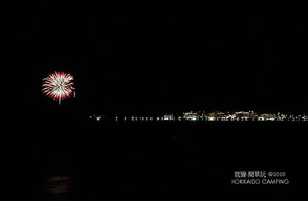 夜,雖然寒冷,和紀老爹椅靠而坐,望著遙遠的對岸,一顆顆的煙火閃起,讓心中又再度溢入熱血補充能量。