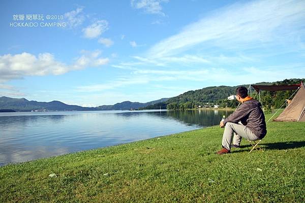依據網路上露友們的推薦,這次來到洞爺湖選擇小公園為露營基地。方走下車,看到陽光,看到藍天白雲,整個心情大好。
