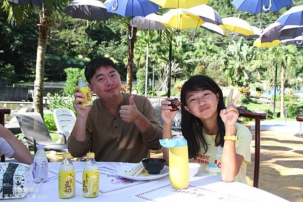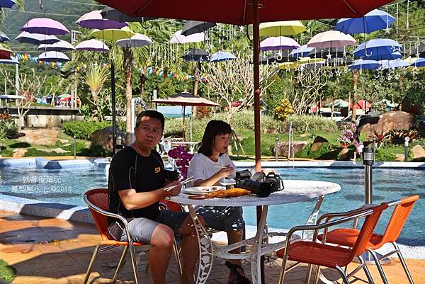直到隔日早上艷陽高照,吃早點去。看著眼前的夫妻,浪漫的善用泳池畔的桌椅,來場浪漫的早餐約會,超美好。