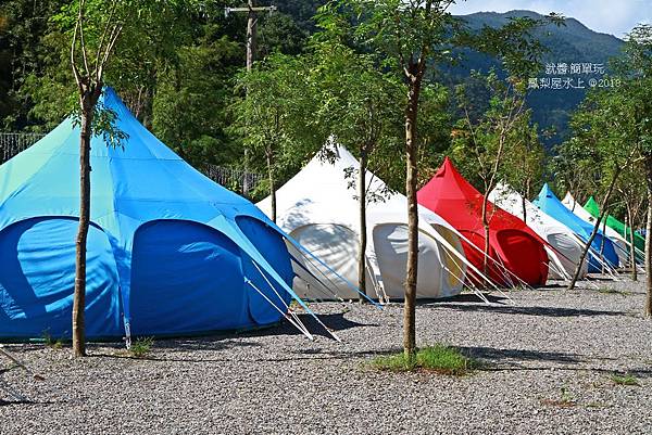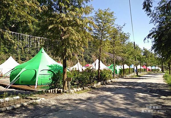 走在營地的道路上,可見到五顏六色的蓮花帳,成了露營區裡特別的景緻。