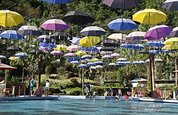 來了好幾回,這次終於看到泳池上方雨傘的裝置藝術。