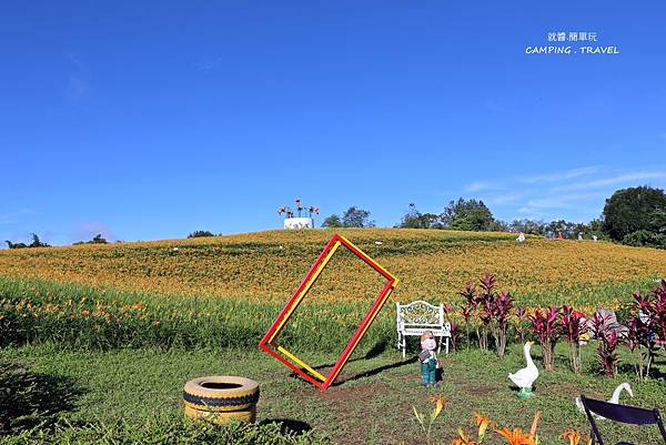 赤科山金針花景點挺多的,例如:小瑞士農場、汪家古厝、千噸石龜、赤科三巨石、金針大道、林家花園等等,若要全部走完挺累了,我們採行漫遊方式,沒有踩滿所有點,也因為不及不徐,而有更好的出遊品質。