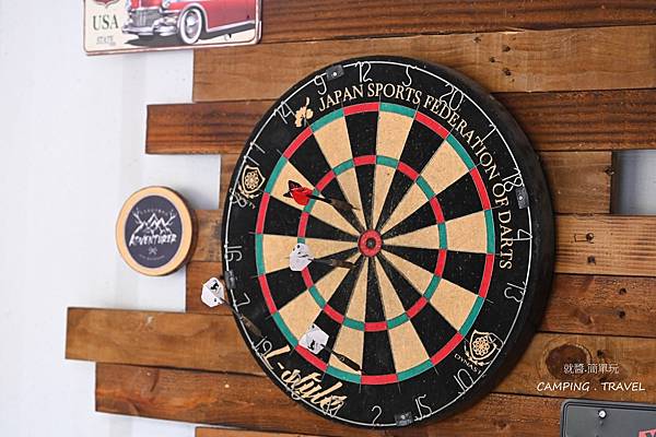 砍完材不夠,又在餐廳射飛鏢,我們真是善用營地的設備啊~~
